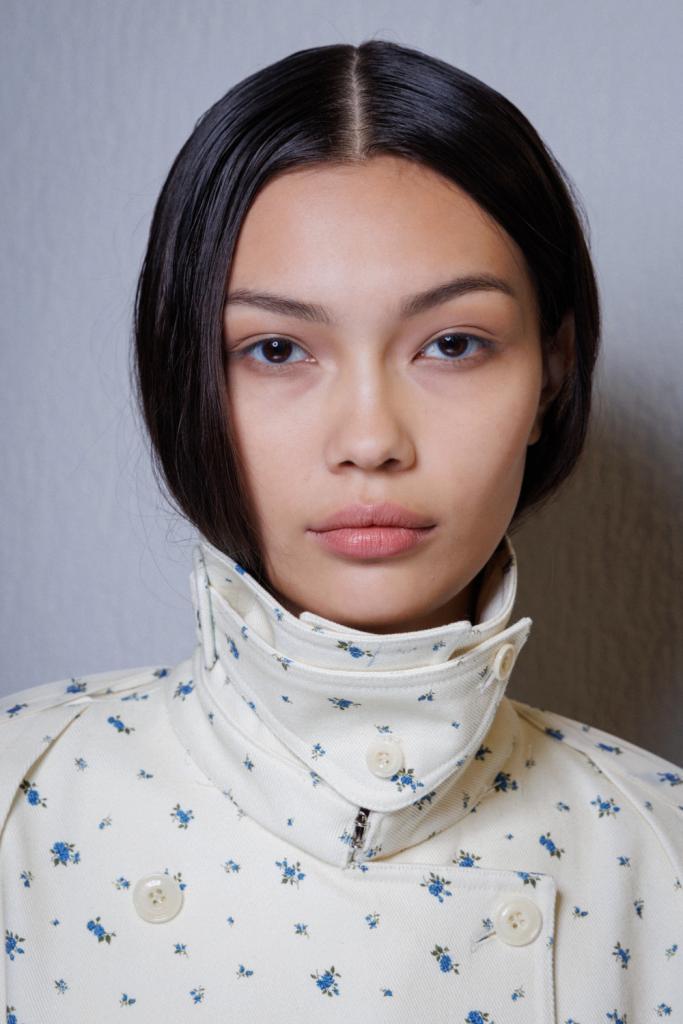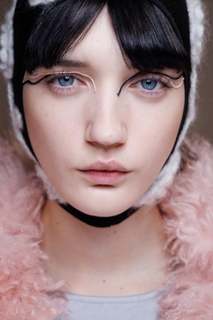 Sur le défilé automne-hiver de Ganni, la tendance des traits d’eyeliner géométriques a été portée à un tout autre niveau. Exit les crayons khôl et les eyeliners liquides, place à un délicat fil de soie, subtilement posé sur la paupière.