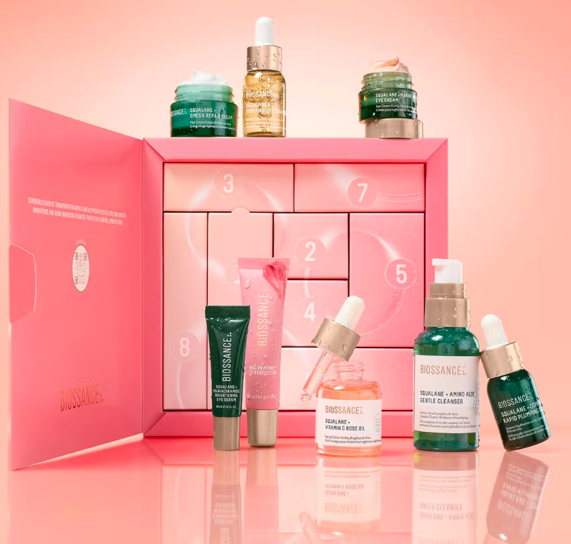 Vous rêvez d’arborer une peau parfaite et glowy cet hiver ? Biossance a imaginé un calendrier de l’Avent « 8 Days of Radiance » et celui-ci renferme une collection de soins dédiée exclusivement à la peau. Huile de rose, crème réparatrice, sérum raffermissant et liftant... Les produits ont pour objectif de sublimer et hydrater le teint en profondeur. La marque coche aussi les cases de la clean beauty en misant sur des pratiques de production plus douces et des ingrédients durables.