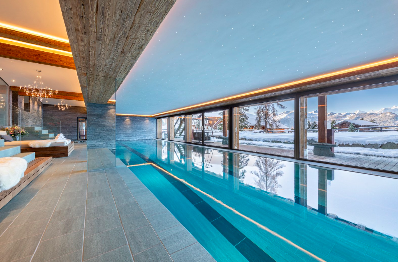 Les chalets de prestige ne manquent pas dans les rues de Verbier, l’une des stations les plus luxueuses d’Europe. Et celui-ci frôle la perfection. Ce n’est d’ailleurs pas un mais bien deux chalets, qui sont reliés par un chemin privé. Piscine XXL, jacuzzi extérieur, cinéma 3D, bar, piste de bowling... Vous n’êtes pas prêts de vous ennuyer une seule seconde.
