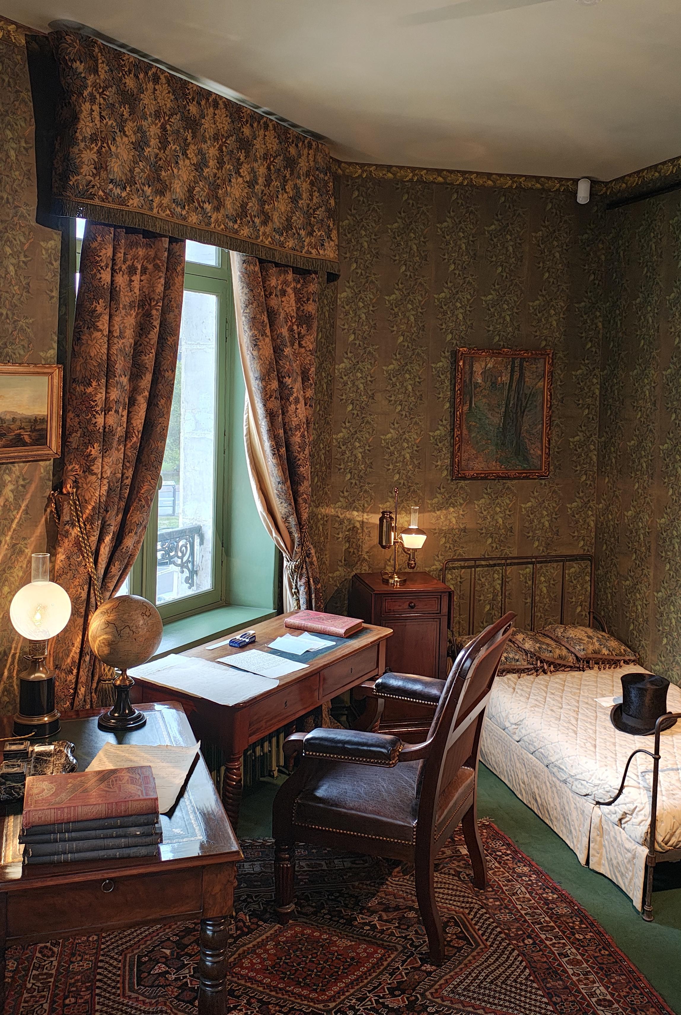 Poussez la porte du numéro 2 de la rue Charles Dubois, et laissez-vous envelopper par l’atmosphère feutrée d’un hôtel particulier du Second Empire, de ses cuisines jusqu’au grenier, en passant par le formidable et étourdissant escalier en colimaçon abrité dans la tour. Le rez-de-chaussée, restauré avec une précision d’horloger, recrée fidèlement l’univers intime des Verne. La salle à manger, avec son mobilier néo-gothique aux lignes élégantes, son plafond à caissons sculptés et ses objets personnels, une pendule qui tic-tac encore, des porcelaines délicates chinées par Honorine, l’épouse bien-aimée de Jules, vous transporte dans leur quotidien raffiné. Imaginez Honorine, cette femme discrète mais essentielle, présidant aux repas familiaux et mondains, tandis que Jules, plume en main, griffonne ses visions futuristes dans son bureau, à l’étage. La véranda d’hiver, baignée de lumière tamisée, évoque ces après-midis où l’écrivain, passionné de botanique, cultivait ses plantes exotiques, alors rares et hors de prix, rêvant de mondes sous-marins ou de voyages lunaires.